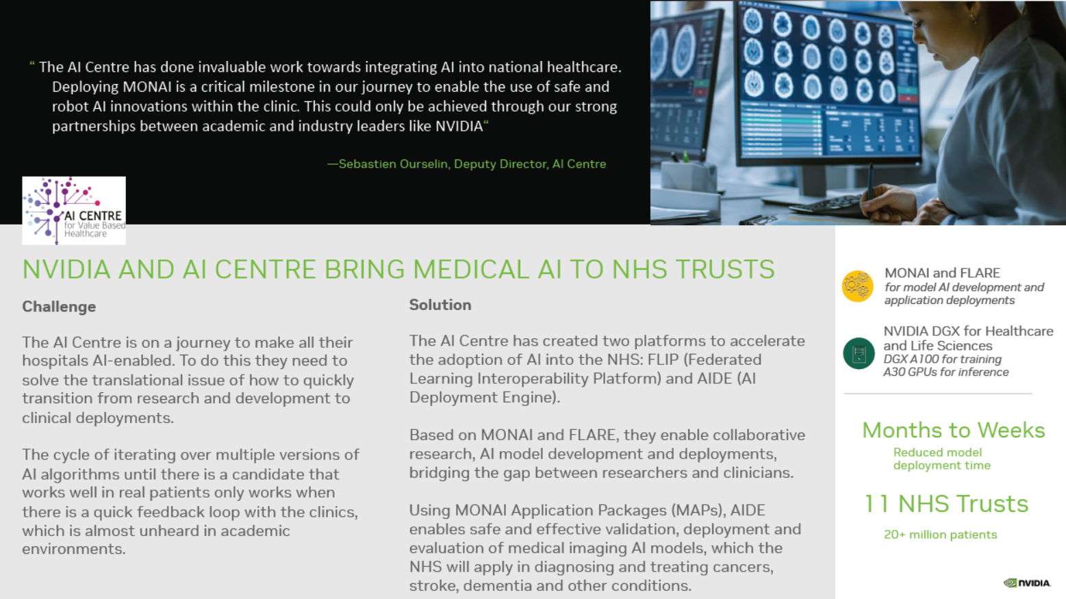 Các nhà nghiên cứu và công ty y tế đã đạt được các mốc quan trọng, bao gồm việc tạo ra các bản thiết kế cho hai protein mới với BioNeMo, thực hiện phẫu thuật đầu tiên của loại với Holoscan và triển khai các giải pháp được cấp sức mạnh bởi MONAI trong các phòng chụp X-quang.